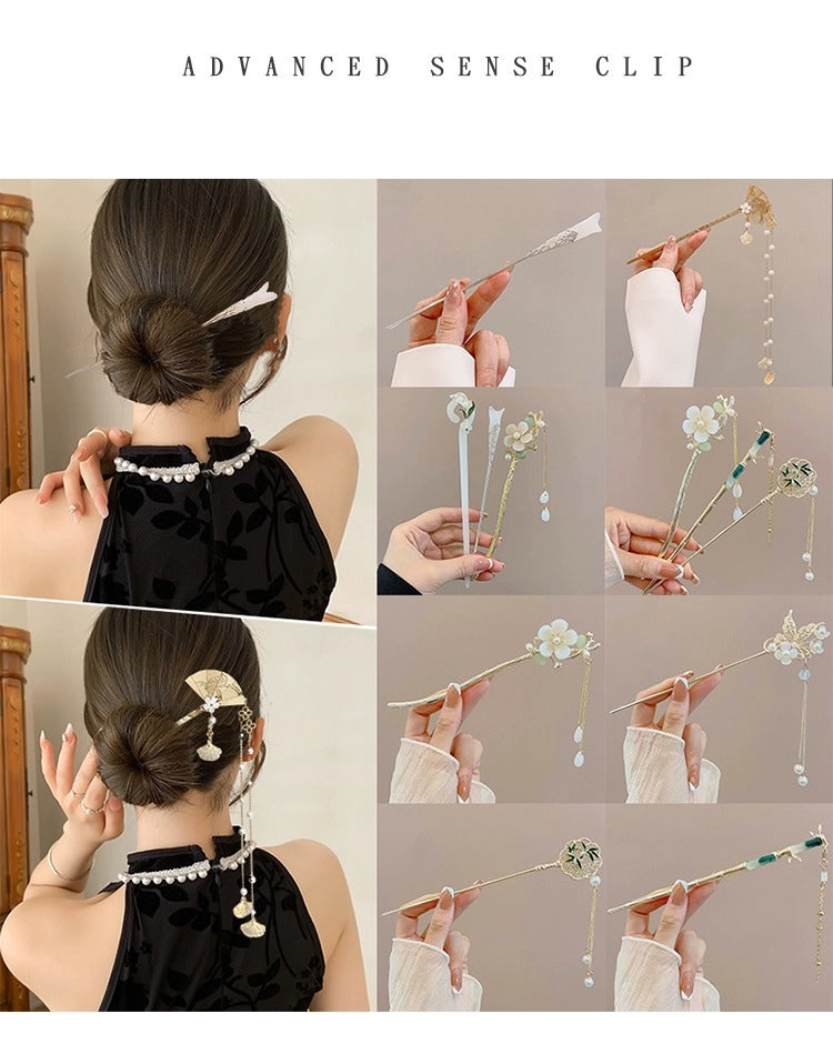 【配饰饰品】6只套新中式古风玉兰花流苏发簪气质国风发钗